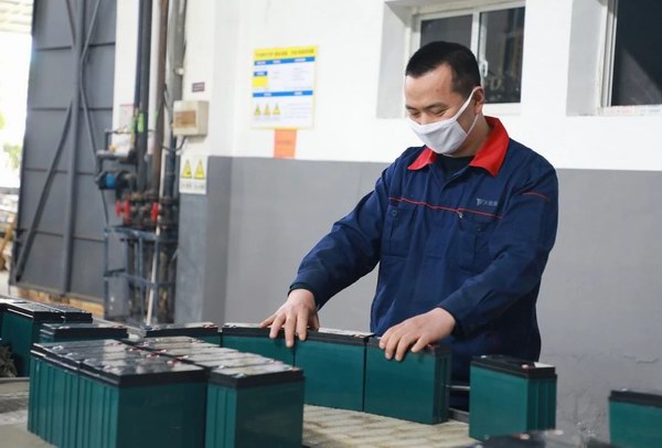 清晨,天能动力能源公司的充电车间开始了新一天的运转,上架充电、打码包装......生产线上一派繁忙景象。车间主任殷银兵,也开始了他一天的工作。