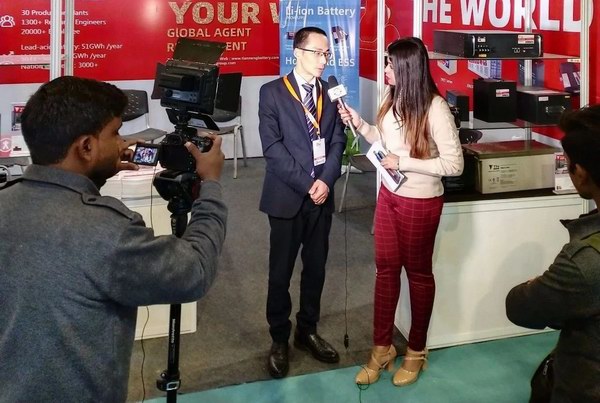 此次展会,天能带来了铅酸、锂电、储能三大品类的产品。天能电池的出现,无疑成为了展会现场最为璀璨的一颗明星。天能亮相印度展备受国内外媒体关注,在展会现场,天能代表接受了EV EXPO的YouTube等多家媒体的新闻采访。