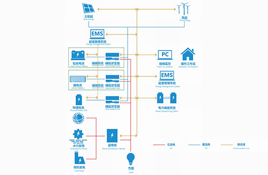 利用光伏、风电等新能源发电技术,通过控制储能逆变系统将电力存储至铅炭电池、锂电池等储能单元。根据项目对功能的要求不同,通过EMS管理系统智能选择调频模式或调峰模式,实现快速响应,精准跟踪,智能切换,最大限度利用储能功能。